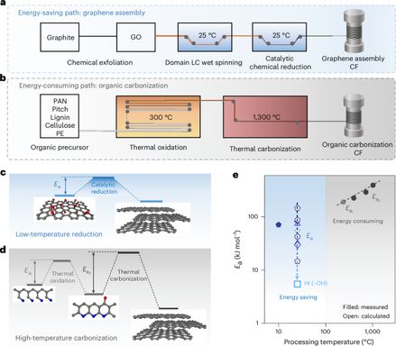 High-performance graphene-based carbon fibres prepared at room temperature via domain folding